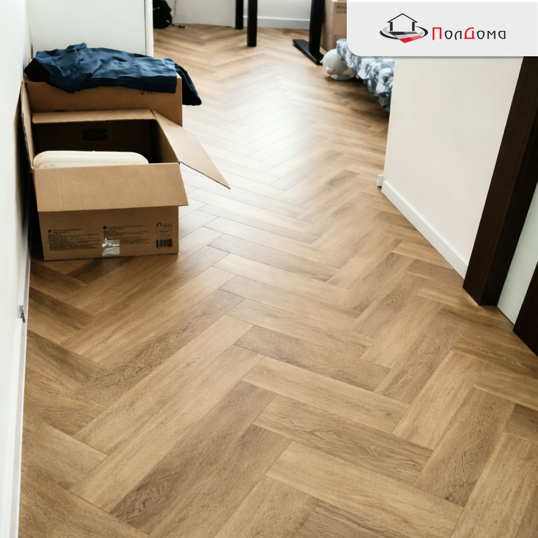 Сама укладка по схеме «ёлочка» – процесс, требующий внимательности и терпения, но наш клиент справился блестяще! Всего за два дня пространство преобразилось до неузнаваемости. Ламинат с текстурой дуба Эльзас создал уютную и стильную атмосферу. Вот что отмечал сам хозяин квартиры: